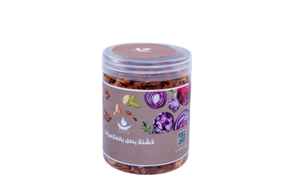 ارتقِ بأطباقك إلى مستوى جديد من الطعم الأصيل مع كشنة البصل بالمكسرات، مزيج متوازن من البصل المحمّر الذهبي والمكسرات الفاخرة المختارة بعناية، مثل اللوز والكاجو والصنوبر، المحمصة لتمنحك قرمشة شهية ونكهة لا تُقاوم.